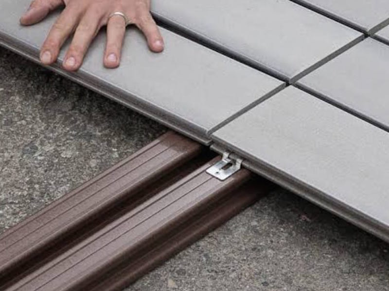 TERAZİSİ DÜZGÜN SERT ZEMİNLERDE UYGULAMA : Terazisi düzgün sert zeminlerde (Seramik, mermer vs. kaplı zeminler ya da şapı düzgün atılmış beton zeminlerde) kompozit profil ile karkas yapılarak decklerin kaplaması yapılabilmektedir. Kompozit profiller, aşağıda verilen montaj şemasındaki ölçülere uygun şekilde, standart aralıklar ile decklerin kesiştiği kısımlarda çift kayıt sistemine dikkat edilerek, buldeks vidalar ile veya yapıştırıcılar ile zemine sabitlendirilmesi gerekir. Alt yapı kompozit karkas sistemi tamamlanmasından sonra metal klipsler ile bağlantı yapılmak üzere kompozit decklerin kaplaması karkas sistemi üzerine yapılmaktadır.